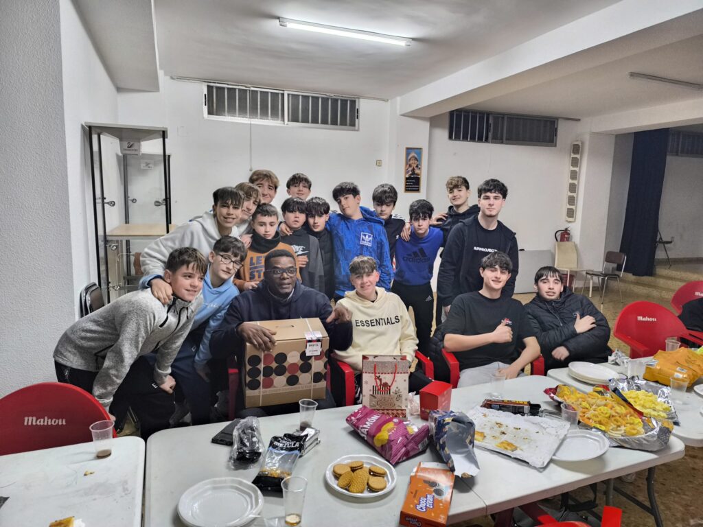 El lunes 22 de diciembre, los dos equipos de fútbol de la parroquia, “Los Distintos” y “Los Bordaletas”, celebraron una merienda especial para despedir el trimestre como auténtica familia deportiva. Fue un momento muy bonito para dar las gracias a los entrenadores, y los padres tuvieron un detalle con cada uno de ellos, además de una cesta de Navidad, como signo de cariño por todo el tiempo y esfuerzo que dedican a los chicos. 🎄💛