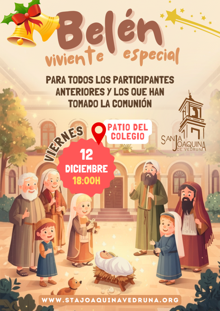 Este año, en la Parroquia Santa Joaquina de Vedruna, tienes una cita muy especial! Invitamos a todos los participantes anteriores y a quienes han tomado la Comunión a formar parte de nuestro Belén Viviente.